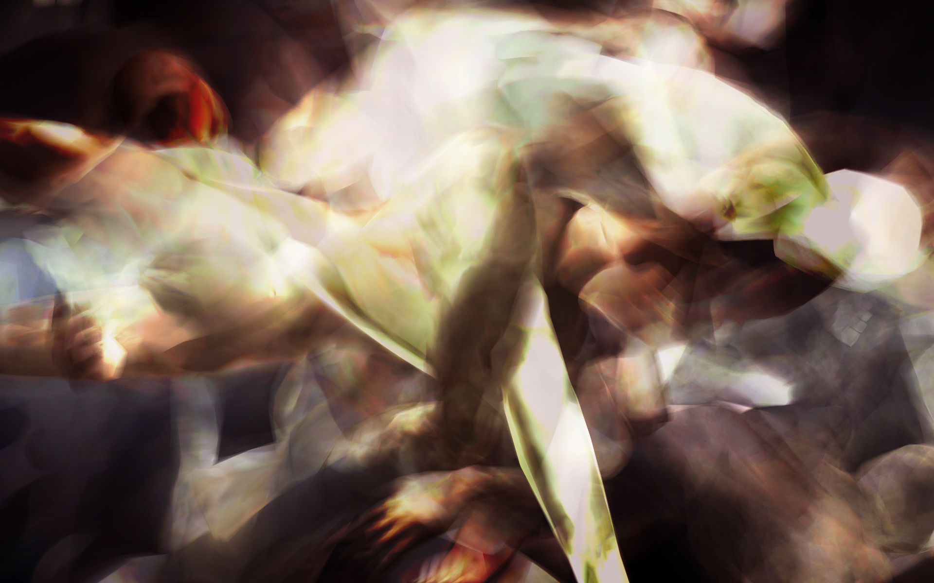 RANGE is a generative audiovisual installation that fluctuates between abstract and realistic forms. The work is staged within an extremely limited virtual space. Trapped figures, with barely any room to move, act as one ambiguous mass. In contrast to the claustrophobic virtual space, the walls, floor and ceiling of the actual installation space are flooded by an ultra wide angle video projector to transform the entire environment into a single living canvas.
